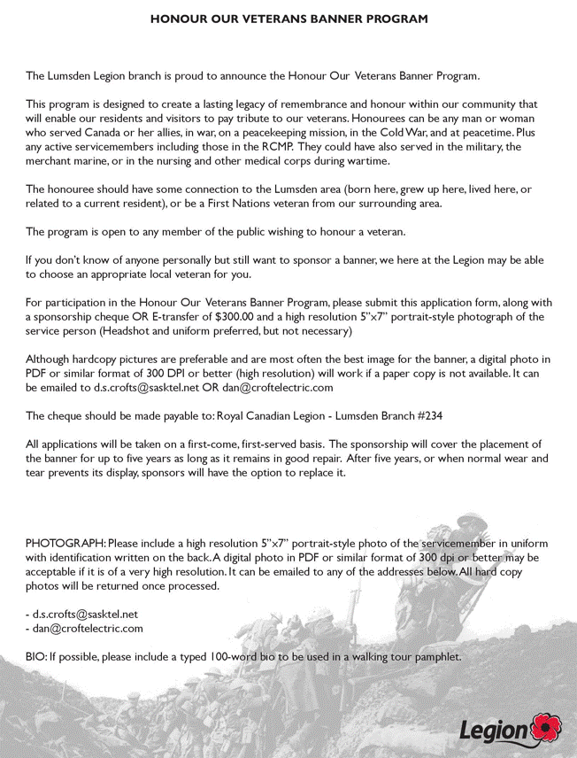 ROYAL CANADIAN LEGION, LUMSDEN BRANCH
