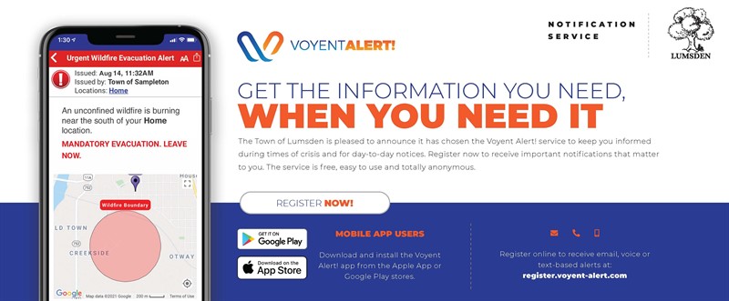 The Town of Lumsden is pleased to have the Voyent Alert! Notification Service to keep you informed during emergencies as well as day-to-day notifications.